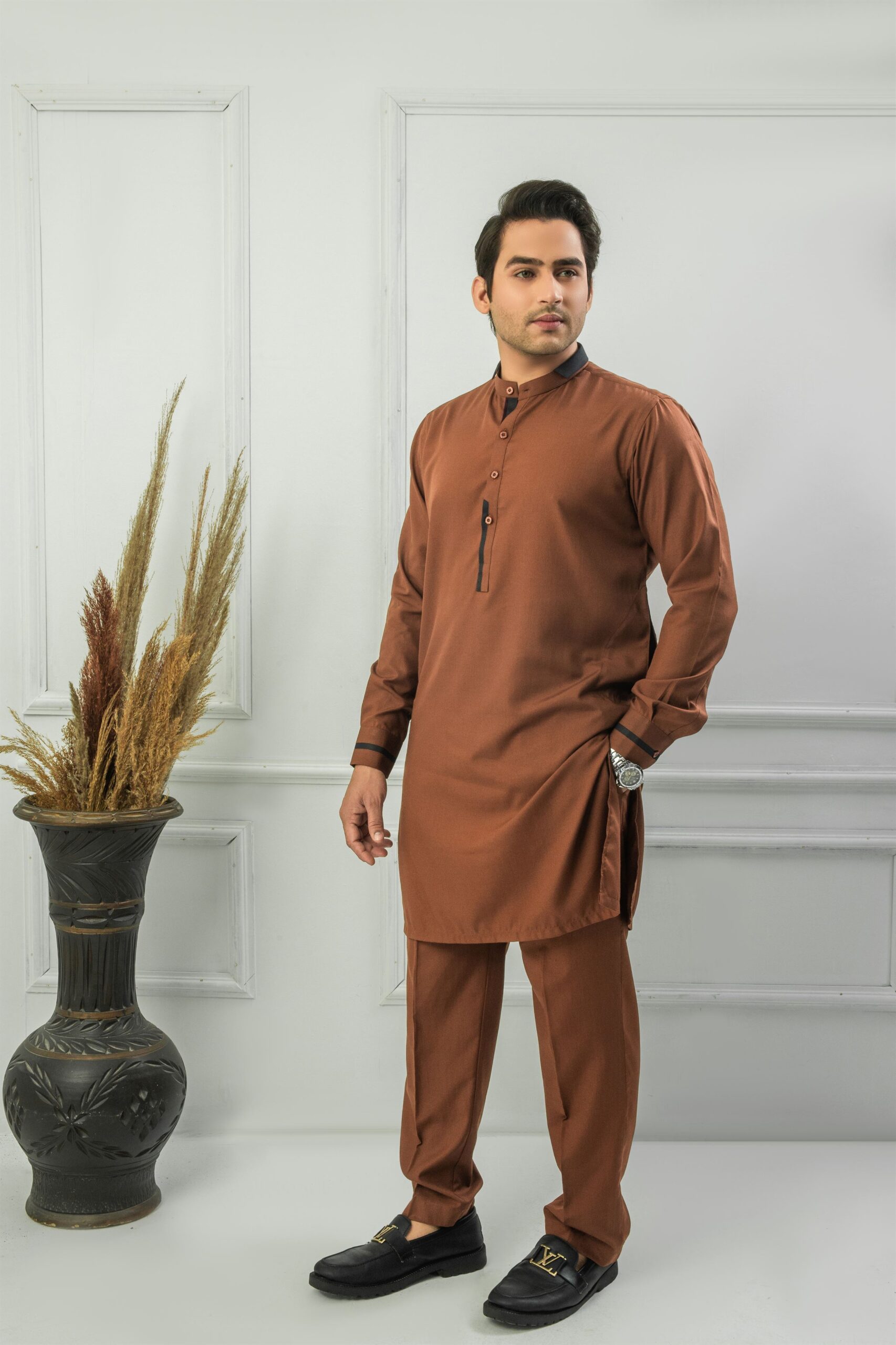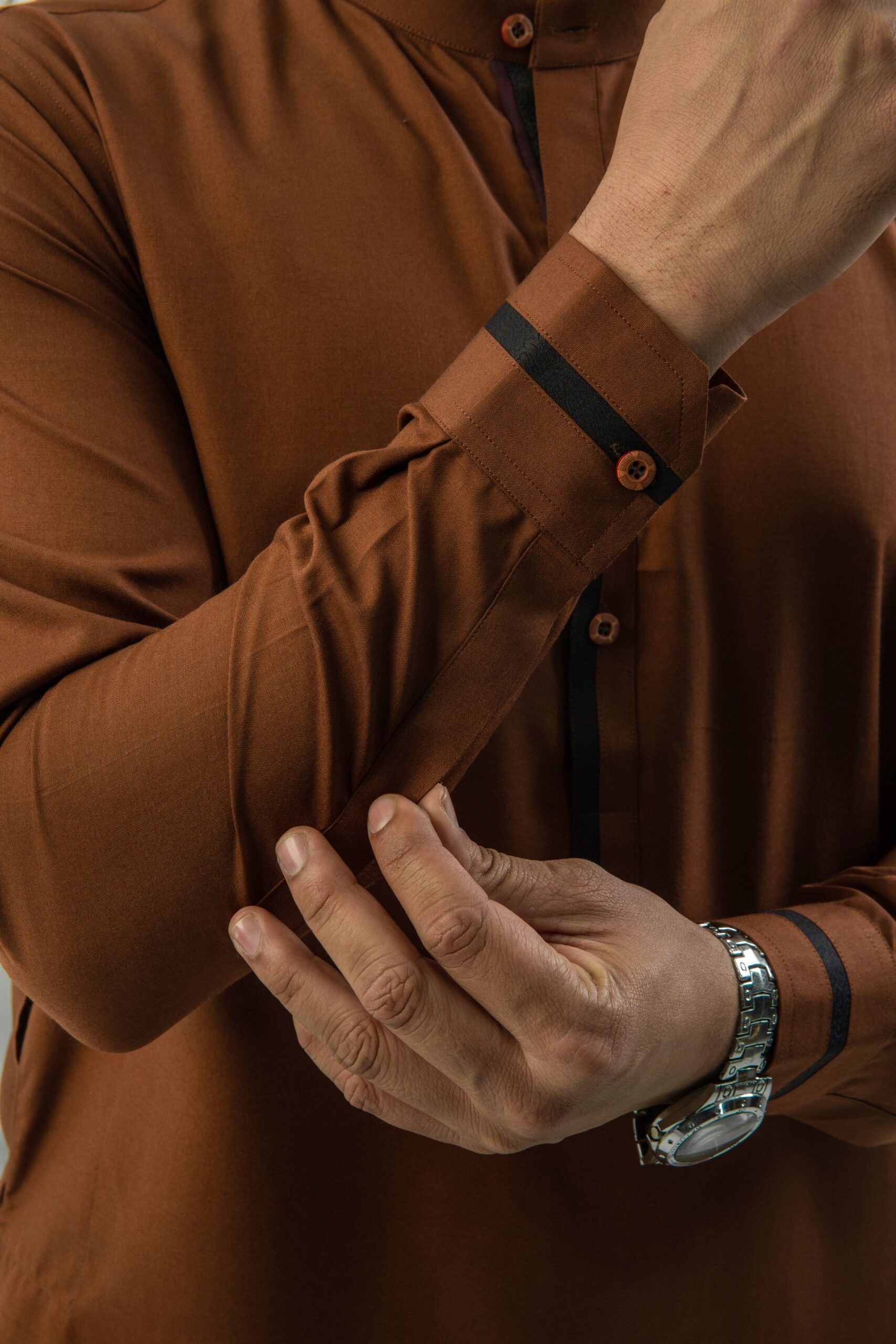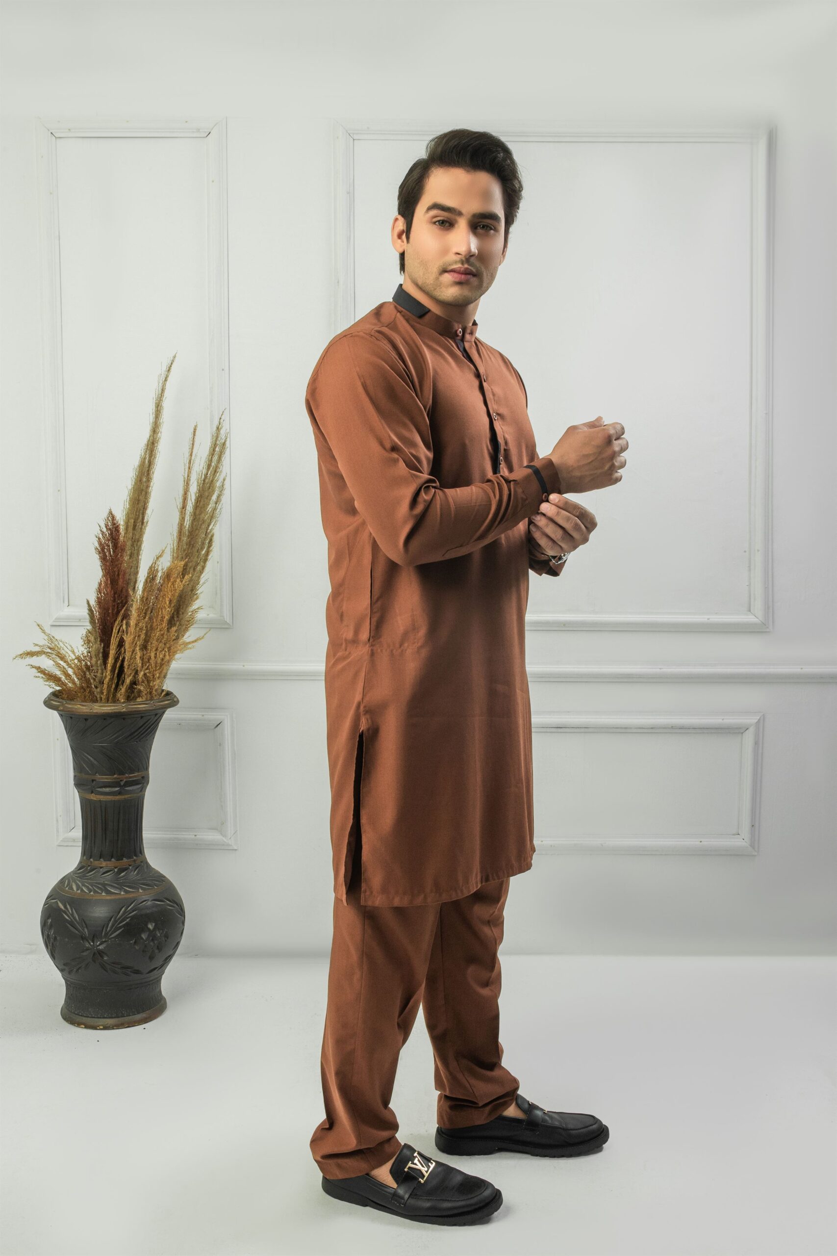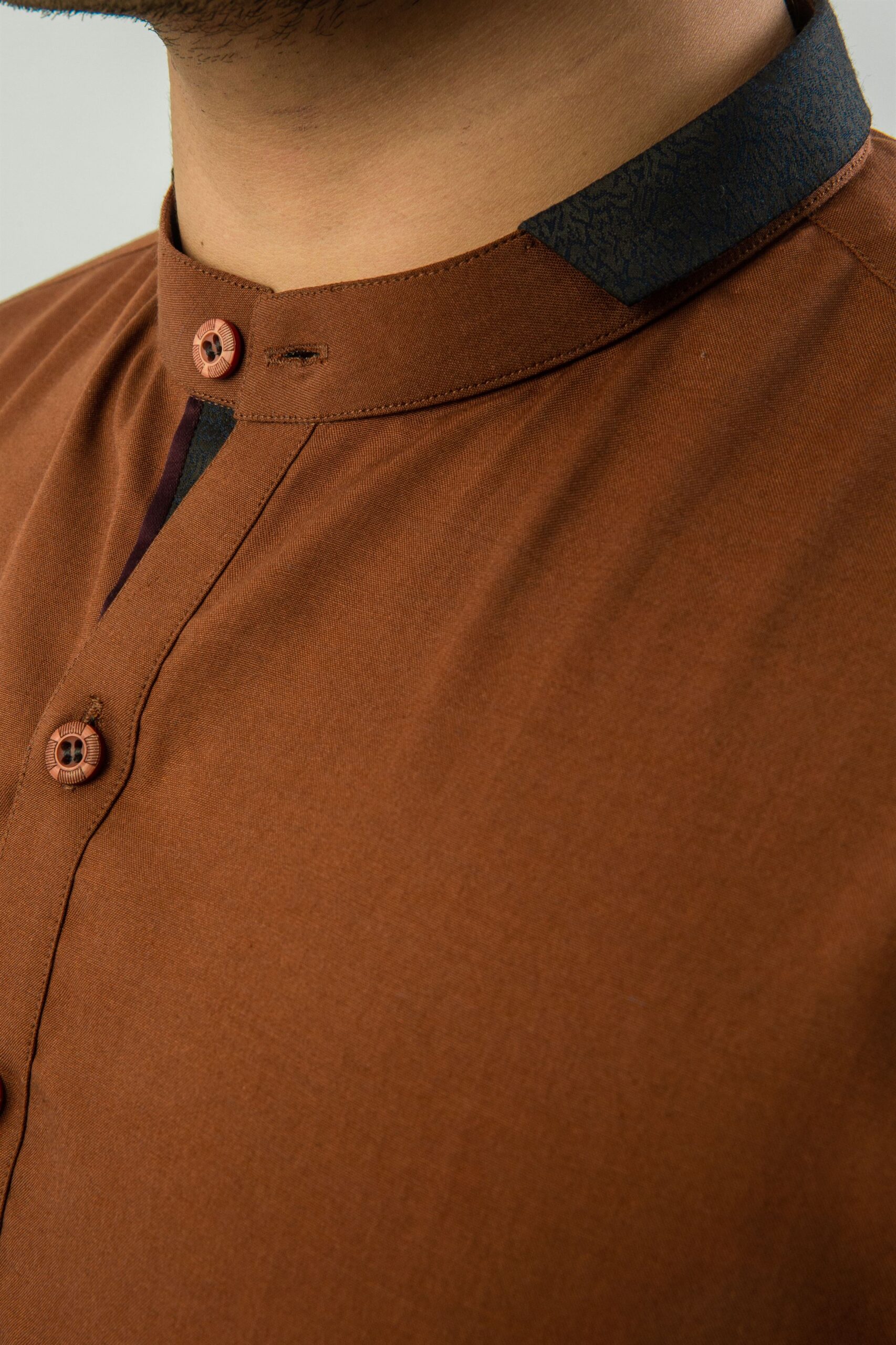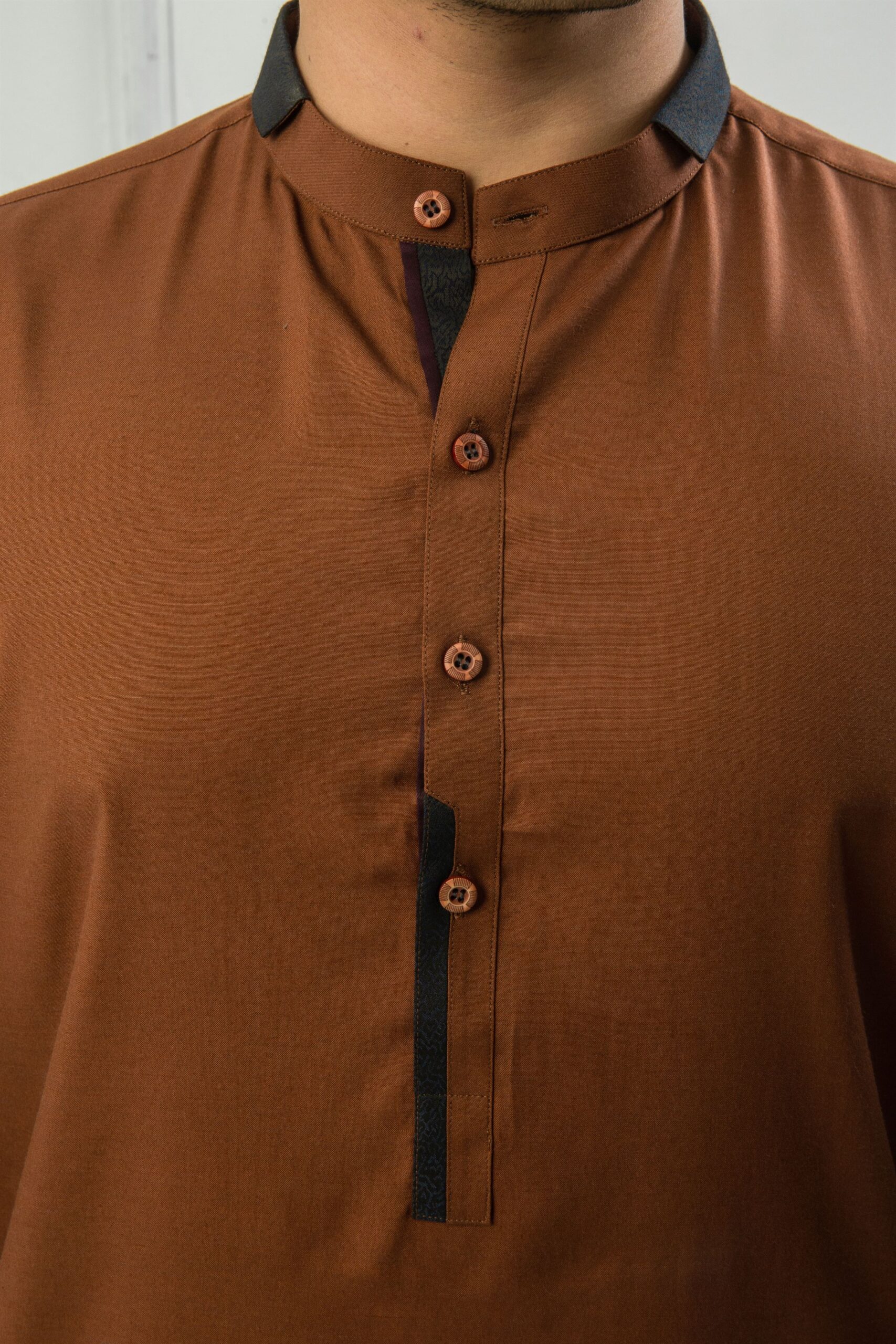 Embrace timeless elegance with the Orhle Classic Brown Shalwar Kameez. Crafted from a premium fabric blend, our attire ensures a comfortable yet refined look, perfect for formal gatherings or casual wear. The rich brown hue, stylish collar, and contrasting black placket add a touch of sophistication, making it a must-have for the modern man.